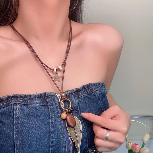 Balanced Falling Sound Vacuum Gold Zircon Pearl Balance Beam Clavicle Chain